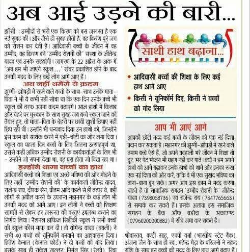 Ummeed Roshni ki- A Light of hope’ is a Jhansi-based NGO that extends a helping hand to the disadvantaged section of our society. Beginning with one person, we are now a group of over a hundred dedicated individuals that wish to create a ‘difference’ in someone’s life. In addition to the financial support, Ummeed Roshni ki focuses on developing a bond with these people and give them the love, respect and acceptance that they very much deserve.